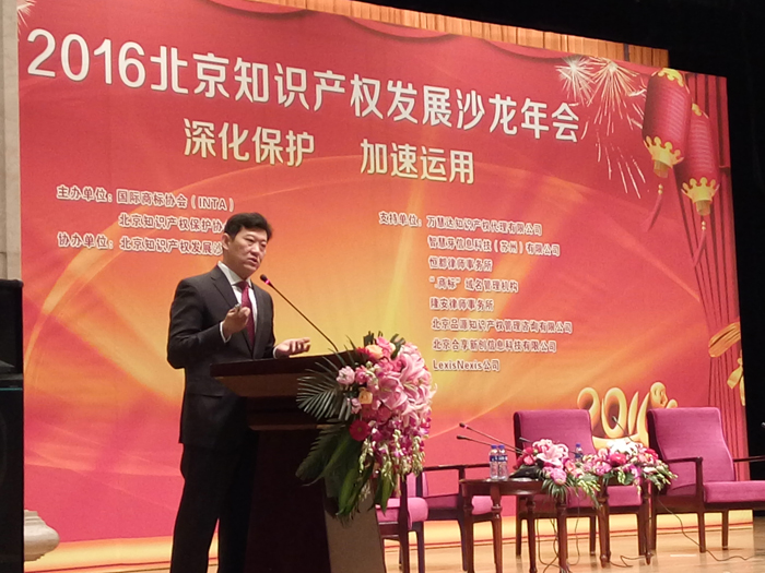 1月12日,由北京知识产权保护协会主办的2016北京知识产权发展沙龙新春年会暨“深化知识产权保护,加速知识产权运用”高峰论坛在北京西郊宾馆银杏大厅隆重召开。作为北京知识产权行业最有影响力的论坛,包括世界知识产权组织副总干事王彬颖、北京市知识产权局局长汪洪、北京知识产权局副局长潘新胜、国家发改委体改所主任史炜、国知局专利管理司司长雷筱云、国际商标协会CEO艾迪埃纳•桑斯•德•阿塞多(Etienne Sanz de Acedo)、“.商标”域名管理机构中国区运营总裁吴养怡等国内多位知名专家和来自包括奇虎360、中粮集团、智慧芽、新诤信等企业界的代表共同参与有关深化知识产权保护、加速知识产权运用的主题研讨。三百多位来自北京知识产权界的知识产权从业者和企业界的代表参加了本次论坛。